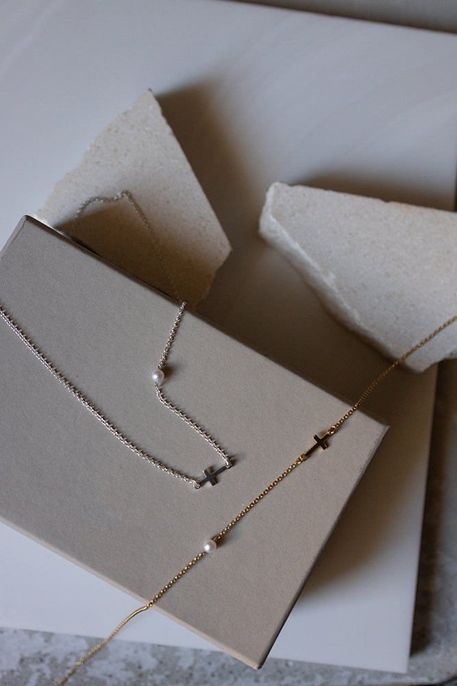 Minimal Cross Pearl Necklace 925°